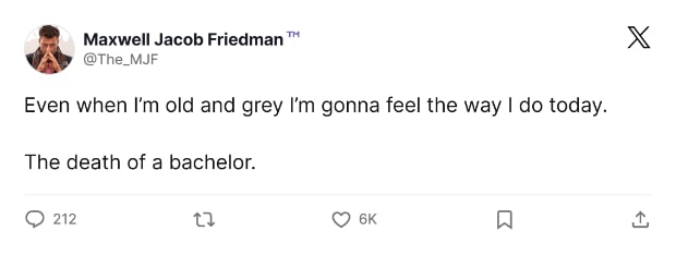 Two years ago, AEW’s MJF confirmed that he was in a relationship with YouTube personality Alicia Atout, which surprised some at the time, as he had previously called her “Tits McGee” when they interacted on camera. However, it was soon confirmed that the insults were just the AEW star fully embracing his heel character, and Atout had won his heart. And now, after rumors spread that the pair had tied the knot, MJF has confirmed this himself on X, describing the news as “the death of a bachelor.“