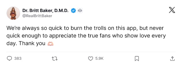Dr. Britt Baker hasn’t wrestled for AEW since November 2024, and while it was initially thought she was working on outside projects, it soon became apparent that she had been purposely removed from television. Still, with AEW returning to Pittsburgh last month, some fans thought this would be when she was reintroduced, with a hometown pop guaranteed. However, this didn’t occur, and now, as her absence continues, she has taken to X to thank the “true fans who show love every day.“