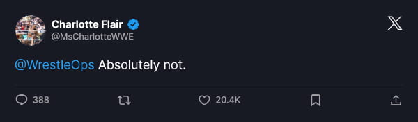 During a virtual signing, Ric Flair revealed he had recently been in talks to wrestle fellow NWA alumni Ricky Morton, but the money wasn’t right. And while the 76-year-old has since taken to X.com to deny that he intends to wrestle again, his daughter, Charlotte Flair, has totally shut this down by tweeting, “Absolutely not,” likely due to his highly publicized heart issues.