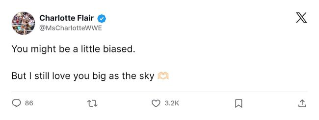 In a heartwarming tweet, wrestling legend Ric Flair has shared a photo with his daughter, WWE superstar Charlotte Flair. However, what really caught fans’ attention was his caption, in which he declared that she had already surpassed his illustrious career, calling her the greatest wrestler of all time. Still, it appears the second-generation talent isn’t letting this go to her head, as she played this down by replying, “You might be a little biased.“