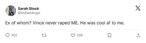 However, everyone is seemingly in agreement that her recent tweets regarding Vince McMahon are misguided, having declared her loyalty to the disgraced billionaire and then saying, “Vince never r*ped me. He was cool af to me.“