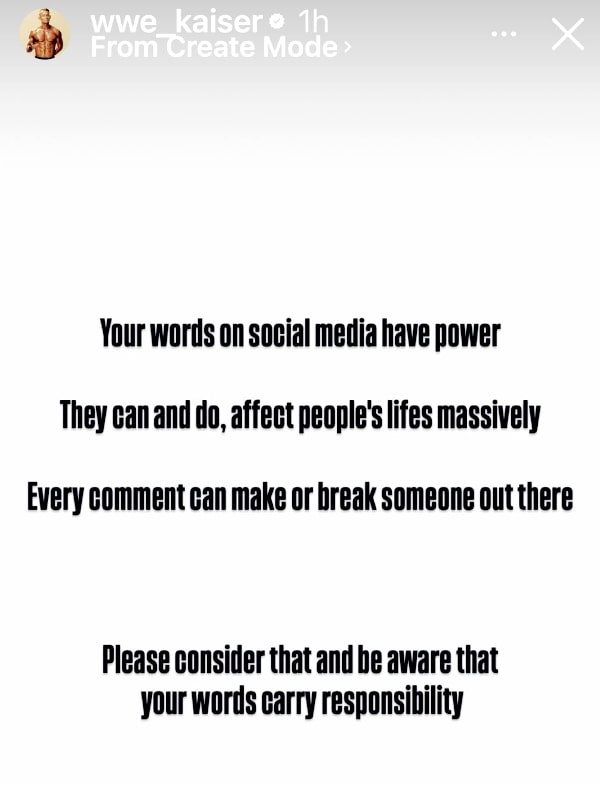 Ludwig Kaiser began dating Tiffany Stratton in 2022, although over the past week, the status of their relationship was called into question after the German was spotted holding hands and later dancing with Andrea Bazarte, a WWE Spanish-language host. And now, after this story went viral on social media, Kaiser has taken to his Instagram Stories to seemingly acknowledge the speculation while considering those gossiping, saying, “Your words on social media have power.”