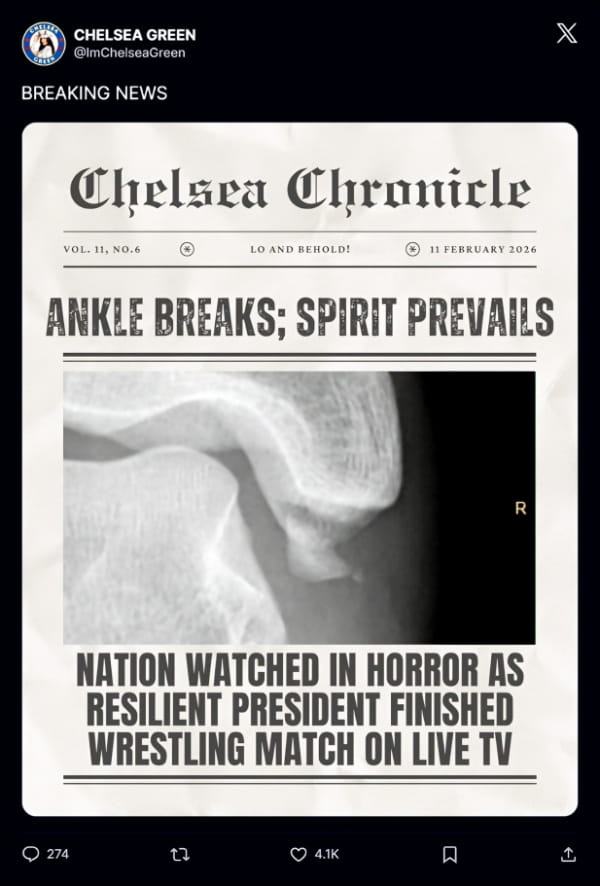 WWE’s Chelsea Green has announced on social media that she has suffered a broken ankle during her Elimination Chamber qualifying match on the February 6, 2026, episode of SmackDown. Initially, it was thought to be a severe sprain after Green posted images of her badly bruised ankle on X.com, but it is unfortunately far worse. Healing times for a broken ankle vary, and how long she is sidelined from the ring will likely be determined by whether she requires surgery or not.